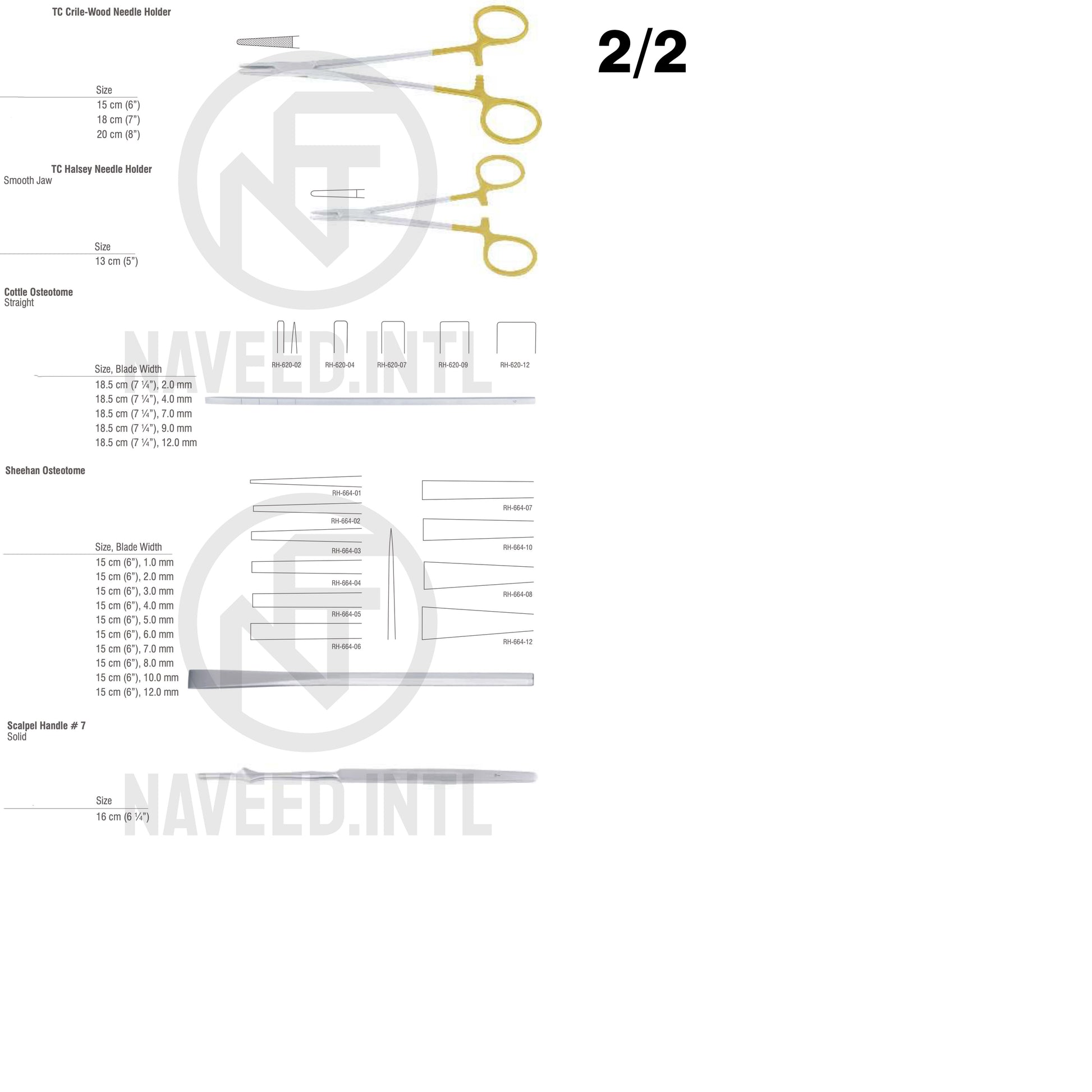 - Sheehan Osteotome – 15 cm; Blade widths: 1 to 12 mm (10 sizes)